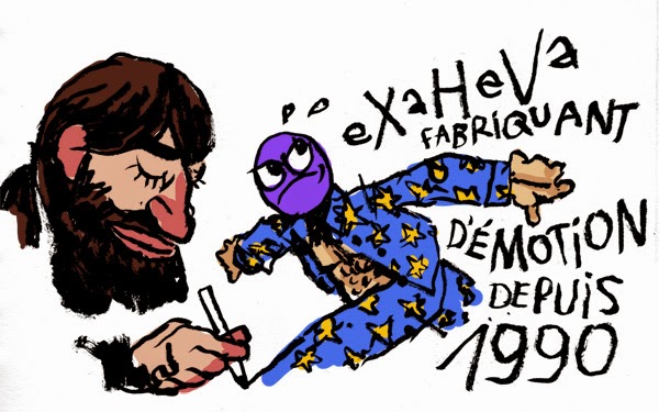 ah ben oui c'est qui qui le dernier invité mystère alors ? Et bien c'est eXaHeVa bien sur, le troubadour graphique, le raconteur de fantaisies, le magicien du quotidien. En voici un portrait très réaliste réalisé lors de notre avant-dernier meeting à la plage.